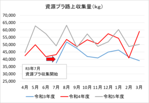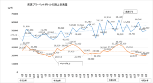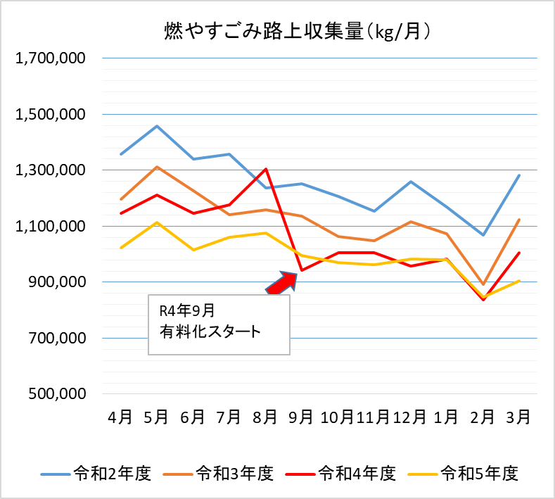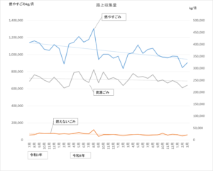 令和2年より燃やすごみの減量が続いていましたが、昨年12月から増加し、1、2月はほぼ前年と同量となりましたが、3月は再び減少しました。