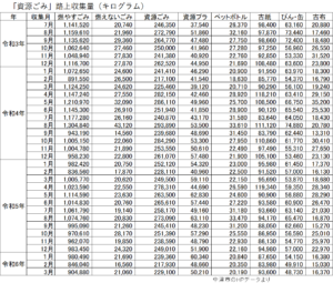 中津市の「資源ごみ等」の収集状況(3月分)