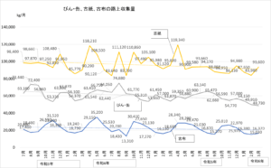 さて、中津市の「ごみ収集(路上収集)」の3月分がホームページに公表され、市のデータをグラフにしてみました。