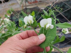 同じマメ科のスイートピーによく似た白い可愛らしい花を付けています。