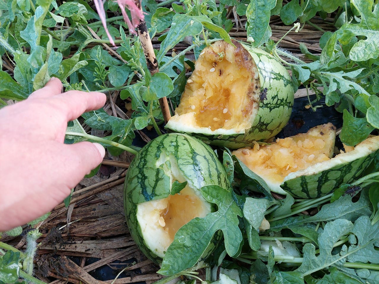 小玉スイカがカラスにやられた!