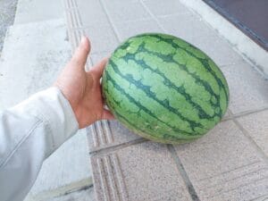 家庭菜園小玉スイカを初収穫しました。2024.07.24 おはようございます。中津市議会議員の大塚正俊です。昨日、となりの米山町内会の防災教室の講演の打合せに行ってきました。11月17日に「地震・津波・豪雨・高潮の際、あなたはどこに避難しますか」と題して講演を行います。さて、庭の畑の小玉スイカを初収穫しました。人工受粉させて35日となりました。スイカの果実のついたヒゲ(節の葉)が、褐色に枯れてくれば収穫のタイミングです。これまで、カラスに3個やられて、残り12個が元気に育っています。今日、スイカを切って孫と一緒に食べたいと思います。 Post Share RSS 家庭菜園夏休みラジオ体操が始まりました。自宅の白漆喰壁の補修工事がようやく終わりました。