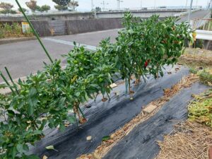 さて、酷暑の中、庭の畑のピーマン、パプリカは、枯れずに頑張っています。