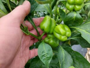 パプリカは小さな実をたくさん付けていますが、なかなか大きくなりません。