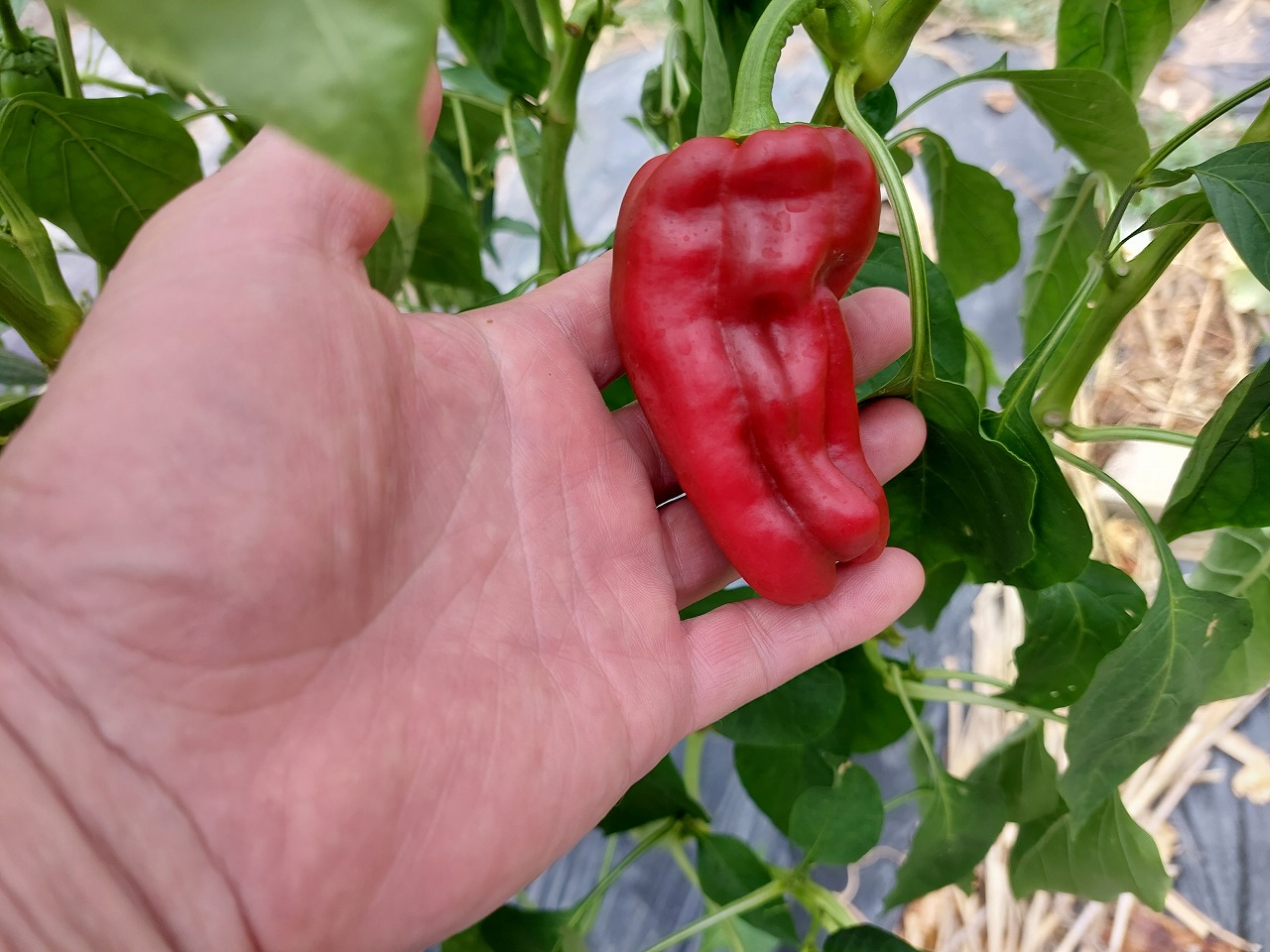 ピーマンは大きくなる前に赤く熟れ始めました。