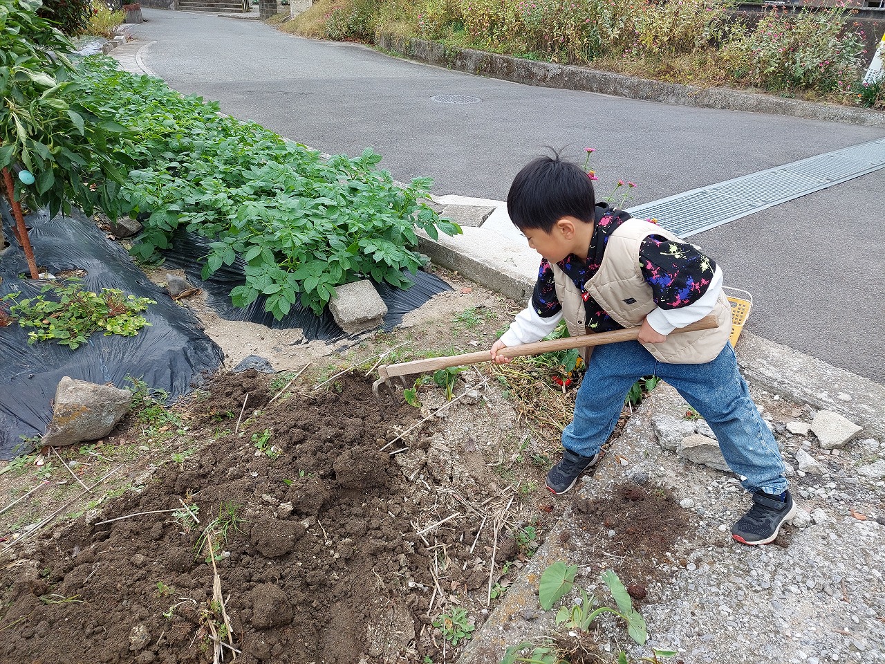 家庭菜園孫と一緒に里芋を収穫しました。2024.11.25 おはようございます。中津市議会議員の大塚正俊です。昨日、地元新大塚町自治会の理事会を開催し、令和6年度総会に向けて令和7年度の事業計画や予算等について協議を行いました。さて、孫と一緒に里芋を収穫しました。5月20日に里芋の苗を植えてから6か月になります。酷暑で葉っぱが枯れてしまいましたが、新たな芽が出て収穫にいたりました。収量は、種芋の2倍しかなく、里芋にとっても厳しい夏となりました。孫にとっては、里芋を掘るのは初体験で、親芋から子芋をポキポキはずしていくのを不思議がっていました。 Post Share RSS 家庭菜園空き家セミナーに参加しました。令和6年12月定例議会が開会