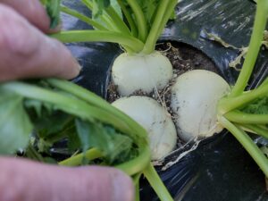 カブ大根を初収穫しました。