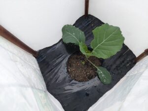 使いかけのビニールシートが短かったので、隣のキャベツまで行きつきませんでした。