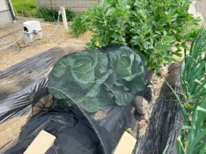 10月に苗を植えたキャベツが、葉っぱを食べられて元気がなかったので追加で植えたものです。