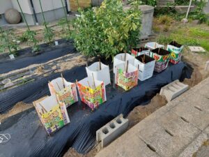 さて、庭の畑にオクラとツルなしインゲンの苗を植え付けました。
