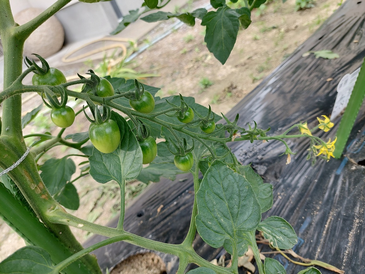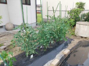 家庭菜園ミニトマトに実が付き始めました。2025.05.31 おはようございます。中津市議会議員の大塚正俊です。昨日は、野菜たちにとっては恵みの雨となりました。家の周りでは、田植えが始まりました。さて、庭の畑のミニトマトに鈴なりに実が付き始めました。4月22日に苗を植え付けて4週間が過ぎました。星形の黄色い花が鮮やかです。3種類のミニトマトを植えましたが、それぞれ実の形が異なっています。脇芽を摘み、支柱に誘引しながら成長を見守っています。 Post Share RSS 家庭菜園雨が降る前に、庭の畑を耕しました。庭にバラとボタンを定植しました。