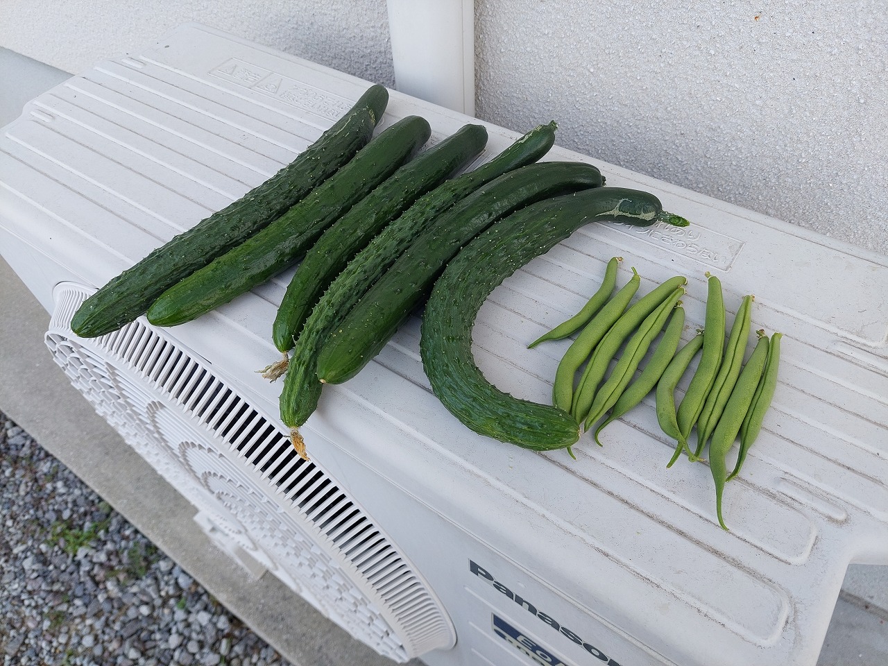 キュウリも最盛期を迎えて、6本も収穫できました。