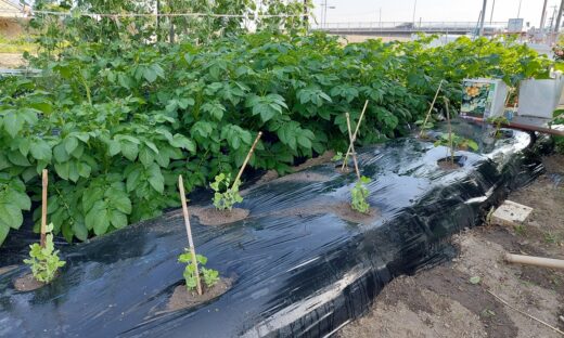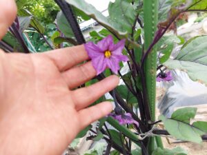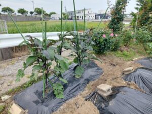 長ナスの苗を植えましたが、中長ナスの姿をしています。