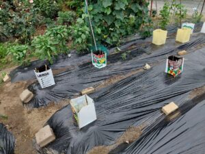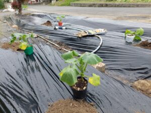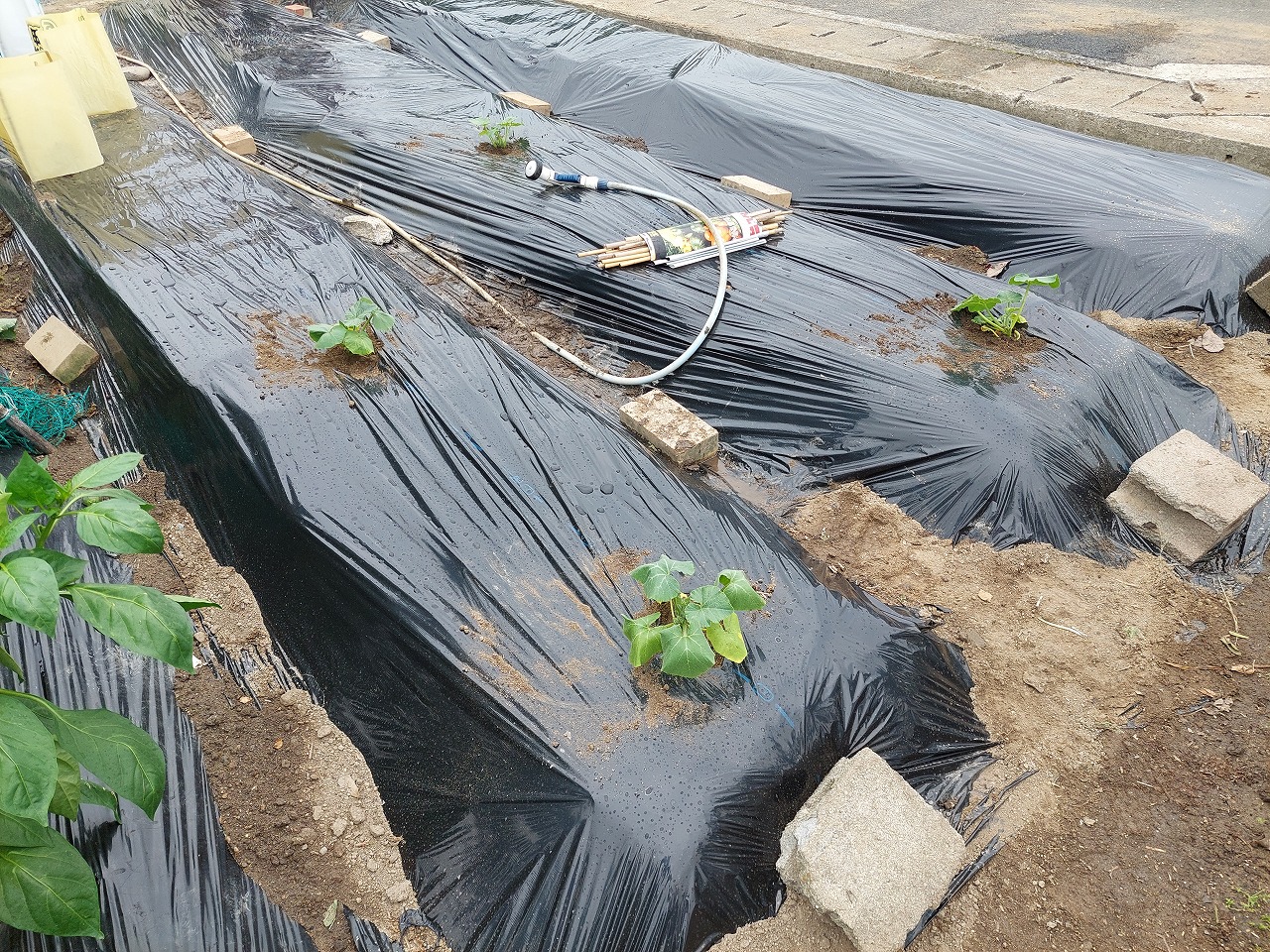 さて、庭の畑にカボチャの苗を4株植え付けました。