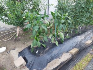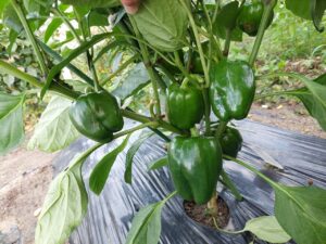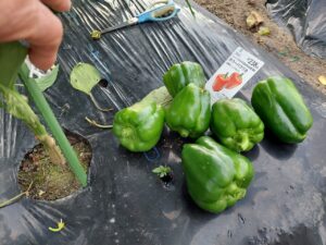 間引いたパプリカは、ピーマンと一緒に野菜炒めに使います。