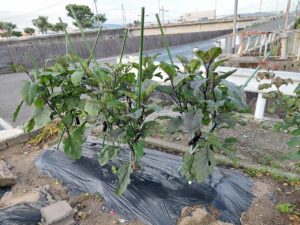 さて、庭の畑のナスがカラスにやられてしまいました。