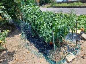 これまで、カラス対策にネットを張ったり、暑さ対策に黒マルチの上に草を敷いたりしてきました。