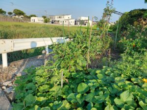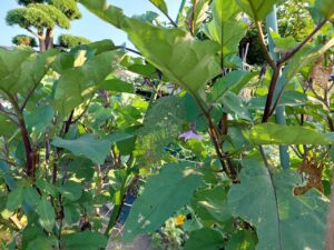 紫色の花も咲き始め、これから秋ナスの収穫を楽しむことができます。