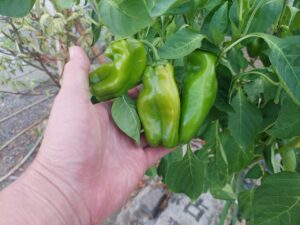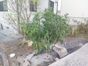 ピーマンは、実が赤く色づき始めていましたが、施肥をしたら色づきが遅くなりました。
