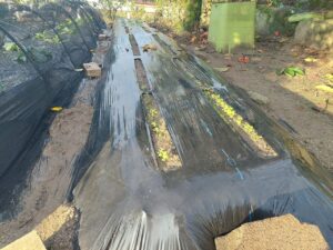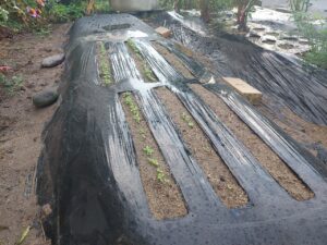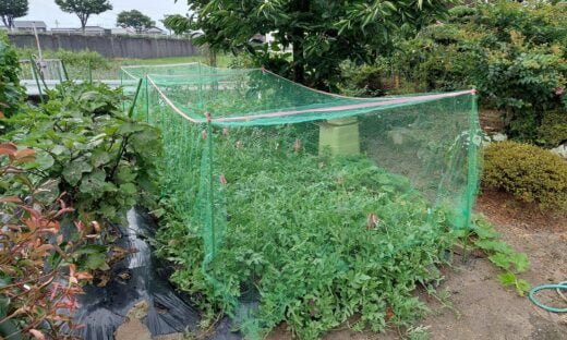 今朝、虫よけのために寒冷紗をかけようと思います。