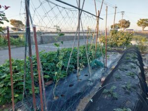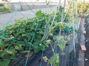 2本収穫できたので、ネットや支柱を片付けて、秋野菜を植える準備に入ります。