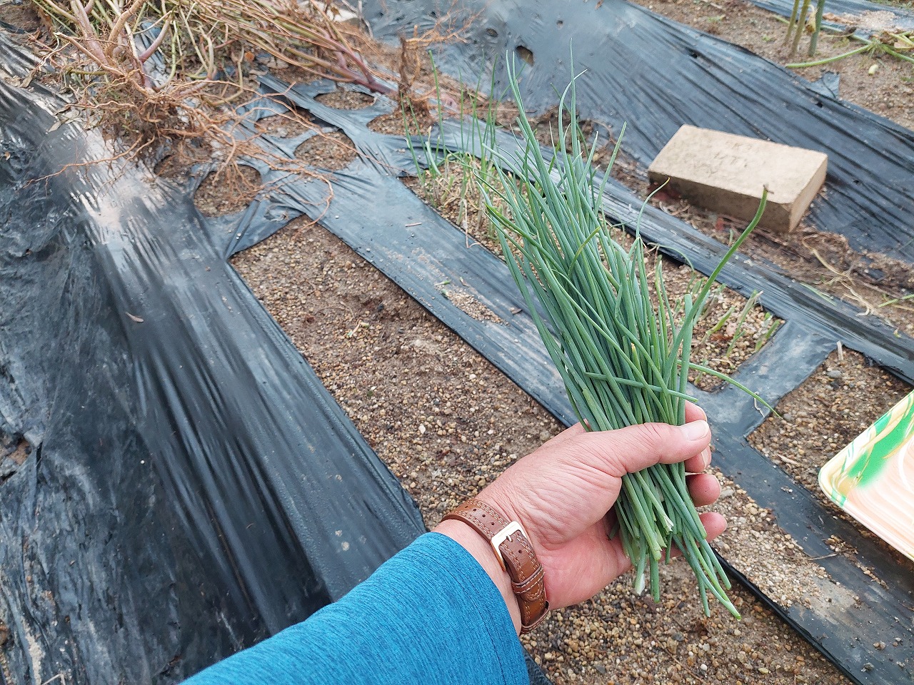 さて、庭の畑の小ねぎを収穫しました。