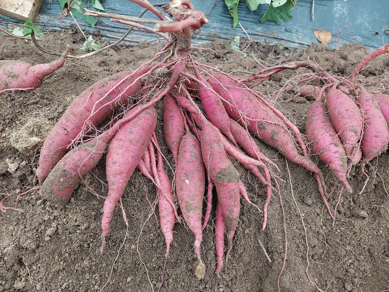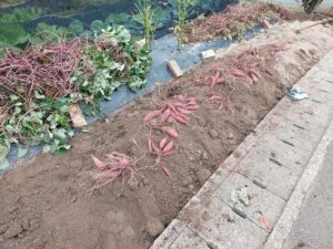 昨日、庭の畑のサツマイモを掘り上げました。
