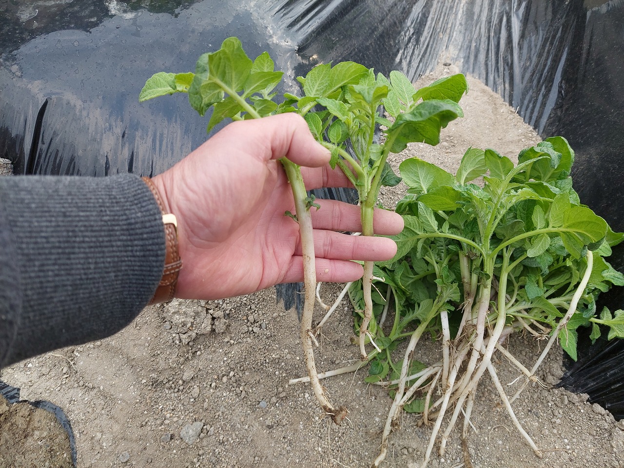 畑のジャガイモの芽かきをしました。