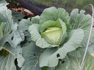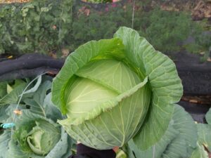 キャベツは初収穫から2週間が経ち、しっかり締まって重たくなりました。