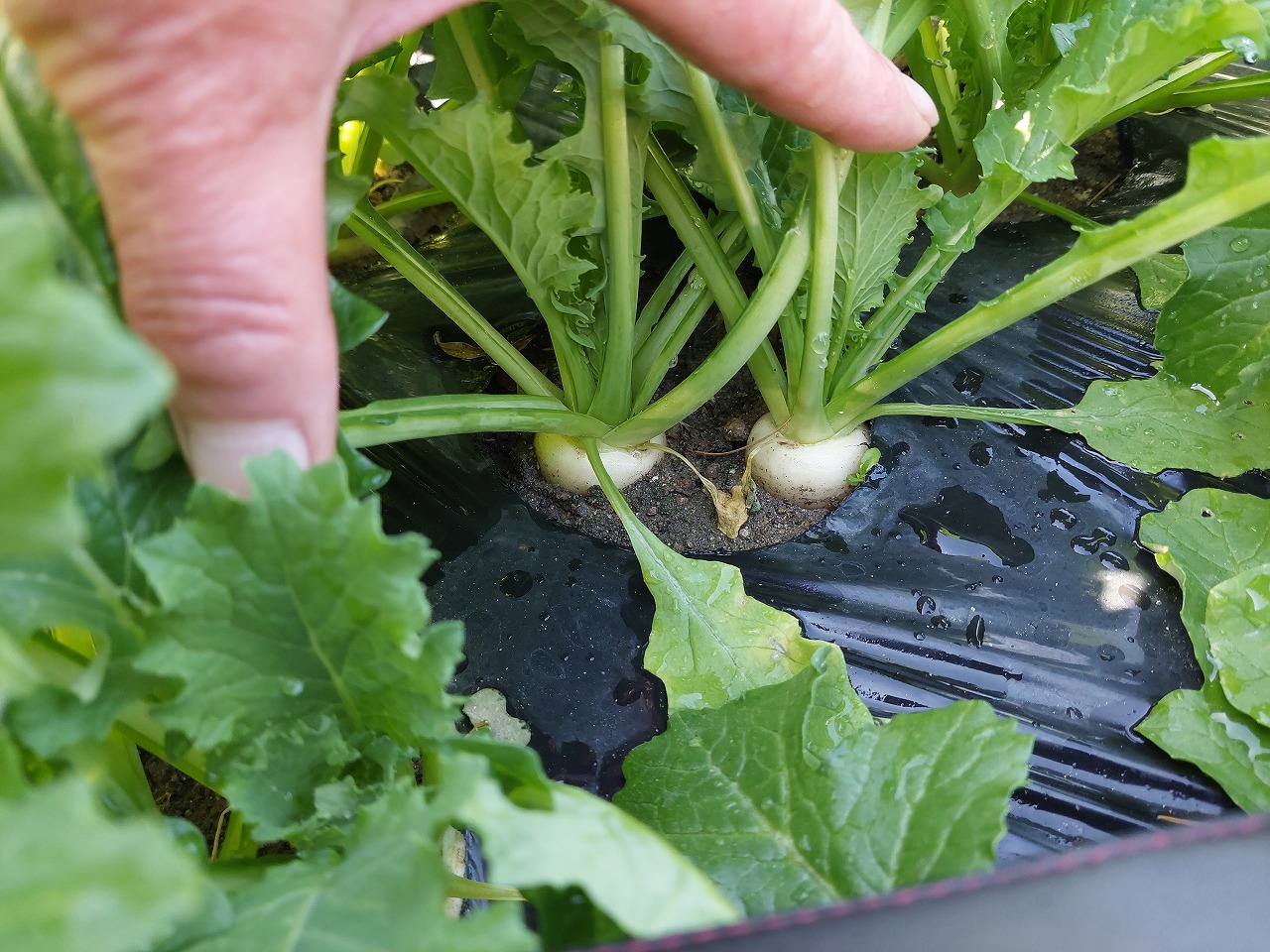 家庭菜園 第2弾のカブ大根を初収穫しました。 2026.01.27 おはようございます。中津市議会議員の大塚正俊です。 昨日、3月議会の一般質問に向けて、資料収集をしました。一週間後(2月2日)には通告書の提出がはじまります。 さて、庭の畑のカブ大根とダイコン、ニンジン、ミズナを収穫しました。 カブ大根は、11月14日に第2弾の種を蒔いたもので、約40日で初収穫を迎えました。。 一つの穴に、2株ずつ植わっているので、窮屈になったところから収穫していきます。 隣の第2弾のダイコンの収穫は、まだまだ先のようです。 Post Share RSS 家庭菜園 スナップエンドウに白い蕾