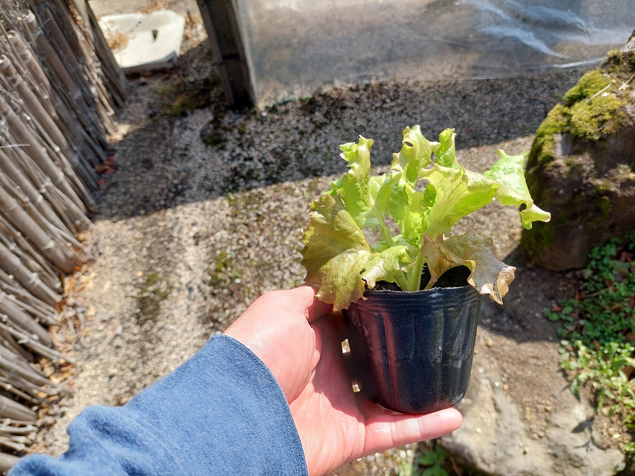 さて、雨を見越して、庭に第2弾のサニーレタスの苗5株植え付けました。