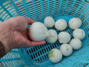 家庭菜園庭の畑のカブ大根を間引きました。2023.11.02 おはようございます。中津市議会議員の大塚正俊です。庭の畑のカブ大根を間引きました。もっと早くに間引くつもりでしたが、ほぼ収穫サイズまで大きくなってしまいました。9月19日に種を蒔いて、10月3日に1回目、10月21日に2回目の間引きをして、今回2本から1本にしました。朝晩は冷え込んできましたが、日中は温かい(暑い)日が続くので、あっという間に大きくなりました。間引いたダイコン葉っぱは、きれいに洗って塩もみをして頂きます。さて、カブ大根のお味は如何でしょうか? Post Share RSS 家庭菜園全国市議会議長会研究フォーラムの調査研究報告書市議会産業建設消防委員会の行政視察報告