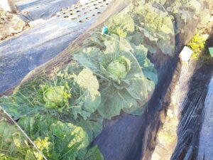 寒冷紗をかけていますが、どこからかチョウチョが入って、虫食いのキャベツになってしましました。