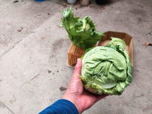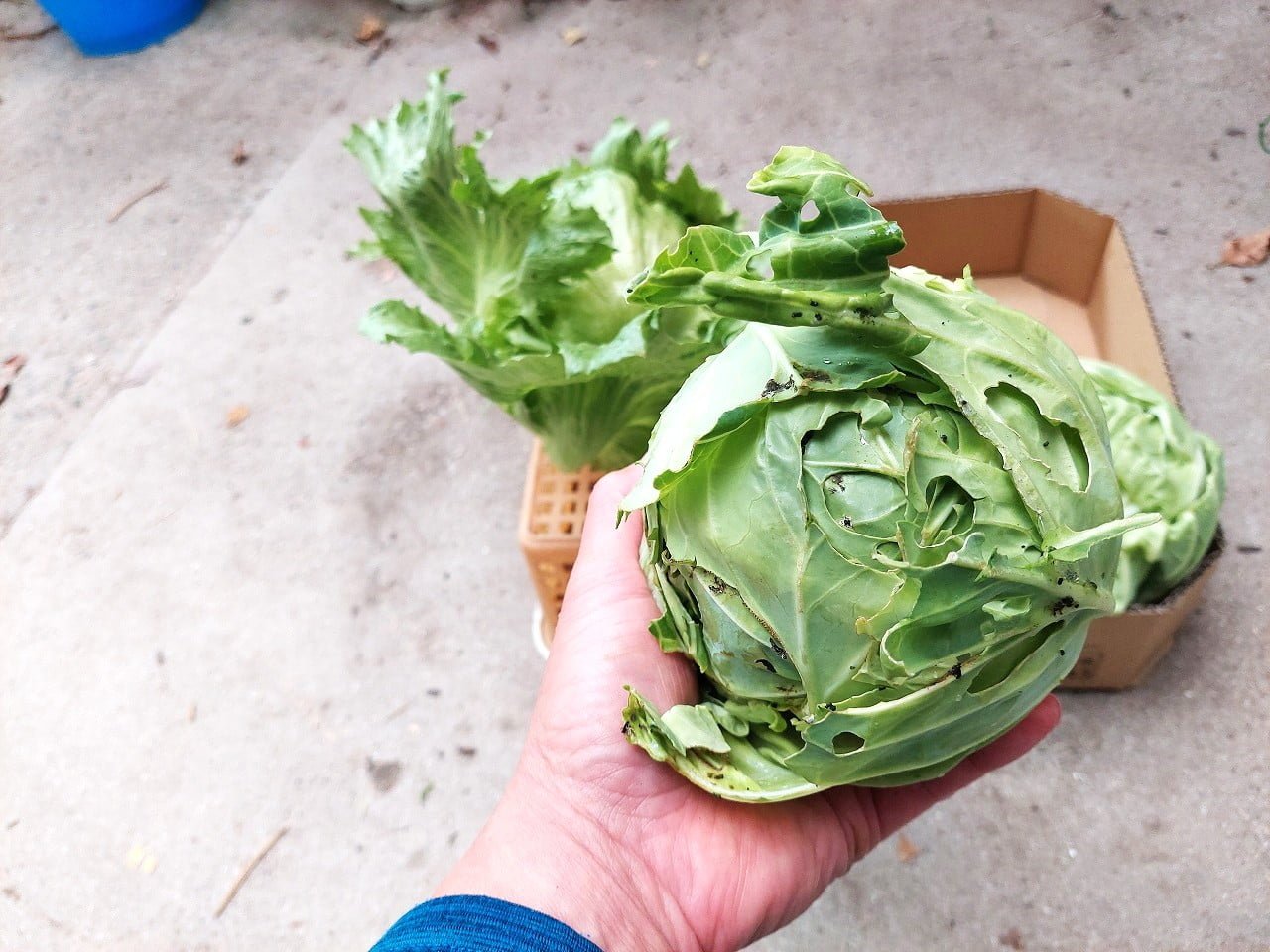 虫食いの少ないキャベツとレタスは孫のところに持って行きました。