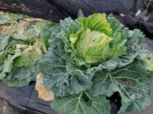 収穫が遅くなって、葉っぱがはち切れそうになっています。