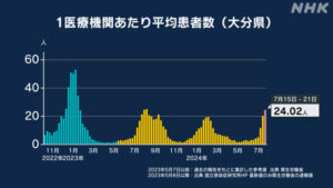 さて、大分県のCOVID-19(新型コロナウイルス感染症)の定点当りの報告数が、前の週の1.2倍に増加し、今月上旬に「注意報レベル」に達してから2週間で2倍以上に増えました。
