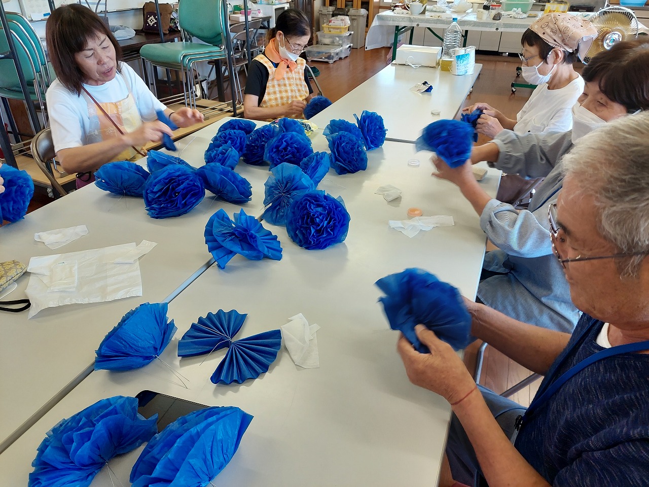 医療・福祉なぎさサロンで花傘鉾の花を作りました。2024.08.18 おはようございます。中津市議会議員の大塚正俊です。昨日、早起きして9月議会一般質問の原稿を書き始めました。なかなか前に進みません。さて、8月の北部校区なぎさサロンを開催しました。体操のお姉さんと一緒に、ラジオ体操やストレッチで体をほぐしました。午前中は、お楽しみ会で「ビンゴゲーム」で景品をゲットしました。午後からは、8月24日から始まる「鶴市花傘鉾まつり」の花を約500個作りました。ちまちま、紙を一枚ずつ開いていく作業は大変です。作った青い花は「大塚町」の傘鉾に飾られます。 Post Share RSS 医療・福祉大分県内の新型コロナ感染者が3週連続で減少中津市の「資源ごみ等」の収集状況(7月分)