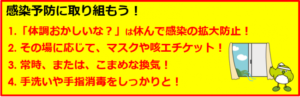 高齢の方と会う場合や大人数で集まる場合は、室内の換気、石けんでの手洗いの励行、咳エチケット、場面に応じた適切なマスク着用など、基本的な感染対策を心掛けてください
