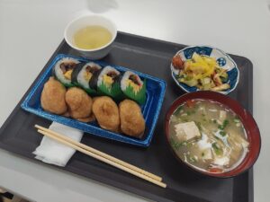 お昼ご飯は、いなり・巻きずし、豚汁、漬物をいただきました。