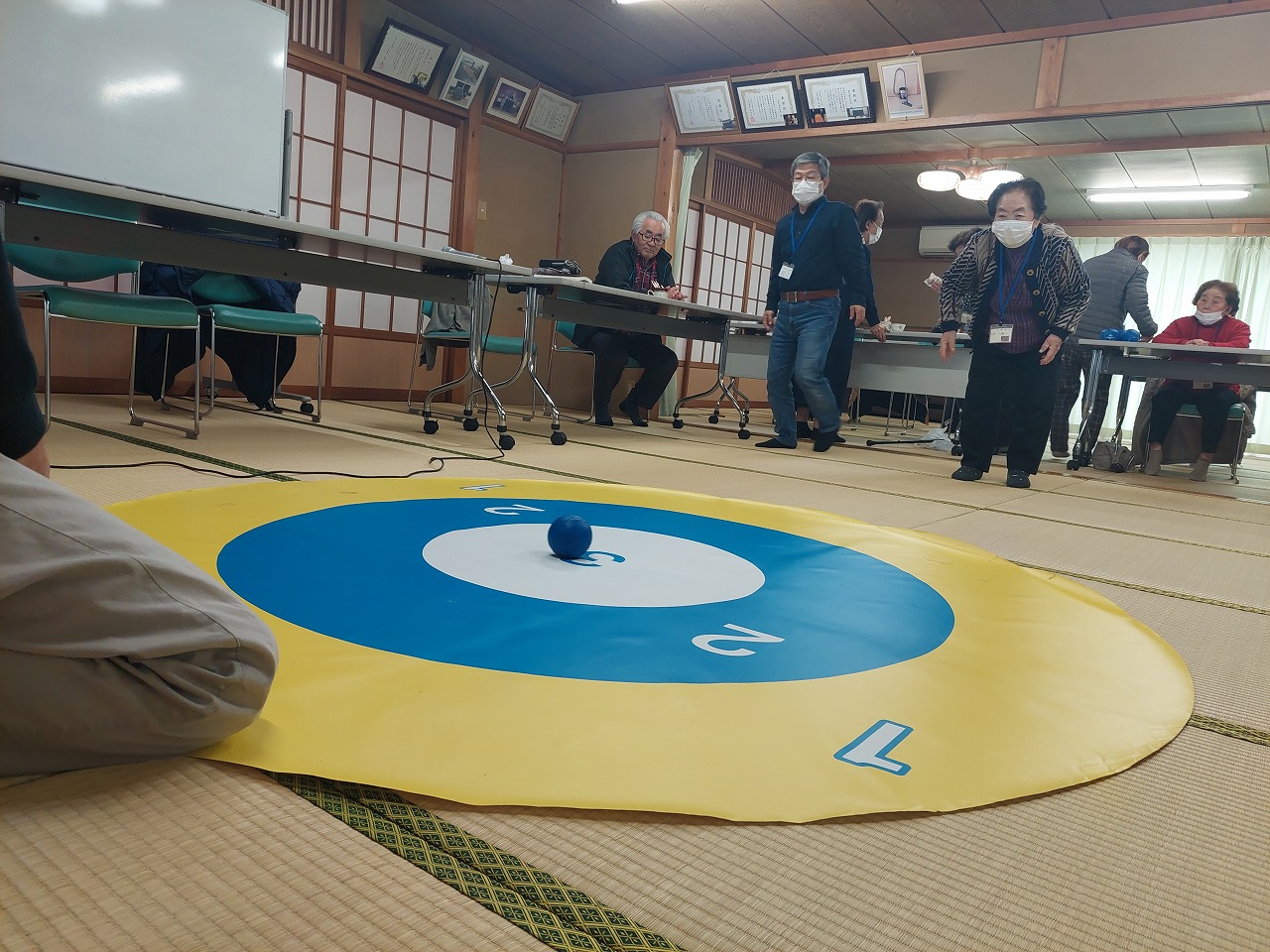 午後から、ボッチャで景品をゲットしました。正式な競技とは違って、投げた玉が中心に近い方に点数に応じた景品がプレゼントされました。