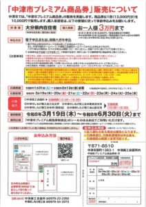 中津市プレミアム商品券の申込みが始まりました。