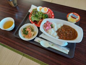 お昼は、福沢諭吉が日本で初めてカレーのことを「コルリ」と紹介したことから名づけられた「カレー」をいただきました。