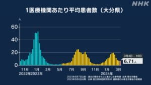 さて、大分県は、令和6年10週(3月4日~3月10日)の新型コロナウイルスの感染者数が58定点医療機関からから389人(定点当り6.71人)報告され、先週の401人(定点当り6.91人)と比較すると減少しています。