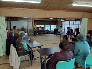 医療・福祉なぎさサロンでスカットボール2024.03.17 おはようございます。中津市議会議員の大塚正俊です。昨日、北部校区なぎさサロンを開催しました。恒例のラジオ体操の後、社会福祉協議会から借用したスカットボールで点数を争いました。真っすぐに玉を転がしても、何点の穴に入るか分かりません。昼食は、ちらしずしに、鶏むね肉と野菜のサラダなどのご馳走をいただきました。午後から、読み聞かせグループ「ゆめくらぶ」の今井さんから、紙芝居と脳トレをして頂きました。今回のサロンの参加者は21名で、11年前の発足当時の80名から激減しています。 Post Share RSS 医療・福祉中津市の新型コロナの感染状況ジャガイモの芽かきをしました。