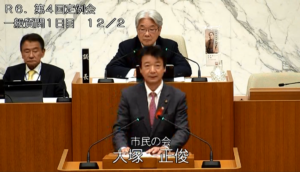 議会通信令和6年第4回定例会(2024年12月議会)2024.12.28令和6年第4回定例会(2024年12月議会)の報告です。1.大塚正俊一般質問議事録(抜粋) ・一般質問配布資料2.議会中継(一般質問動画)3.議案質疑議事録(抜粋)4.12月議会の概要5.令和6年度12月補正予算(第5号)の概要及び主要事業6.令和6年度12月補正予算(第6号)の概要及び主要事業 Post Share RSS 第56号 まちづくり通信 “今年も初志貫徹を貫きます...年末恒例の大塚家の餅つき大会