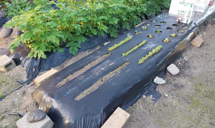 ニンジン、ミズナなどの芽が出揃いました。