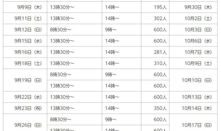 9月のワクチン集団接種の予約受付開始(8/23より)