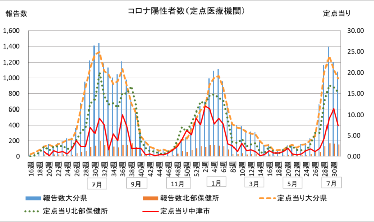 おはようございます。中津市議会議員の大塚正俊です。 大分県の新型コロナウイルス感染症の定点当りの報告数が、2週連続で減少しました。しかし、7月上旬か...