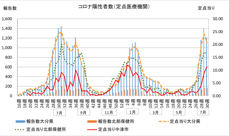 おはようございます。中津市議会議員の大塚正俊です。 さて、大分県のCOVID-19(新型コロナウイルス感染症)の定点当りの報告数が、前の週の0.86...