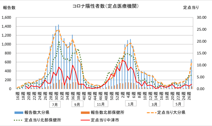 おはようございます。中津市議会議員の大塚正俊です。 さて、大分県のCOVID-19(新型コロナウイルス感染症)の定点当りの報告数が、注意報レベルの「...
